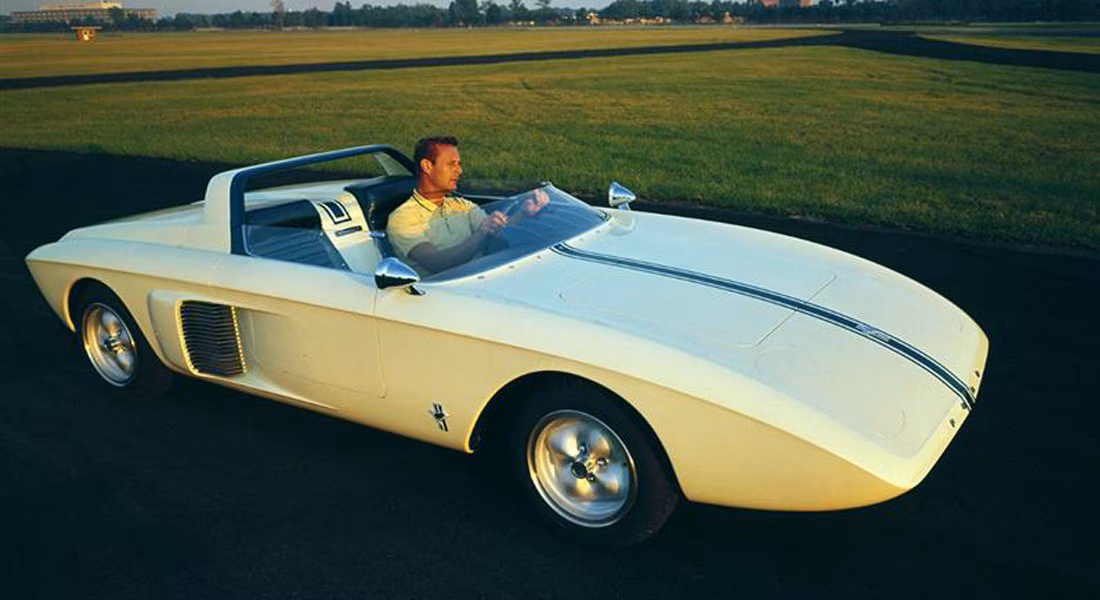 Ở chiều hướng khác, Mustang II với bốn chỗ ngồi và thân xe gia cố bằng sợi thủy tinh, kích thước chiều dài của xe cũng được tăng thêm dài thêm 12 cm và mui xe hạ thấp hơn 7,5 cm. Mẫu concept này Ý tưởng này ra mắt tại Watkins Glen vào tháng 10 năm 1963 để khơi gợi sự mong đợi cho mẫu Mustang sản xuất sắp ra mắt. Chiếc xe được mô tả nội bộ là “Cá tính: đủ kín đáo để đi lễ nhà thờ, đủ táo bạo để mang vào trường đau xe, đủ thời trang để chơi ở câu lạc bộ”.